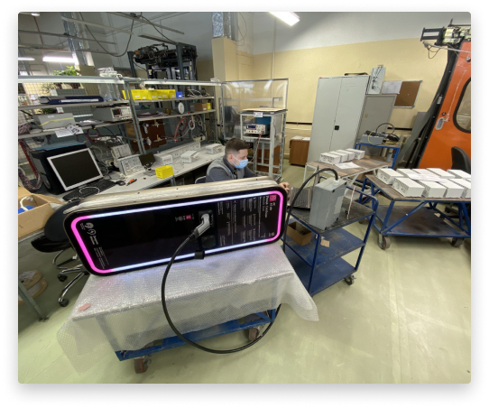 Перед передачей ЭЗС заказчику происходит процесс тестирования зарядной станции. Технические специалисты проверяют, какую мощность выдает станция, все ли узлы работают корректно.
